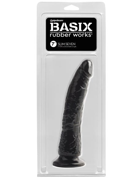 Basix Rubber Works 7in Black Slim Dong W/ Suction Cup