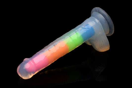 Lollicock Consolador de silicona arcoíris que brilla en la oscuridad de 7 pulgadas con bolas