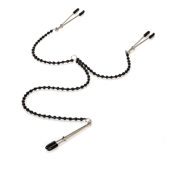 Las abrazaderas íntimas Nipple Play Tweezer incluyen 3 abrazaderas multiusos totalmente ajustables. Diseño de cincha único con anillo de tensión ajustable. Almohadillas suaves y cómodas. Cadena doble resistente de alta calidad para mayor sensualidad. No se deslustra, sin níquel. Seguro y puro para el cuerpo y el placer. Cadenas de hierro sin níquel. Abrazaderas para pezones de hierro y nailon sin níquel. Almohadillas de PVC sin ftalatos. 2,75 pulgadas cada abrazadera para pezón. 22,75 pulgadas de longitud total. Peso a granel 0,8 onzas.