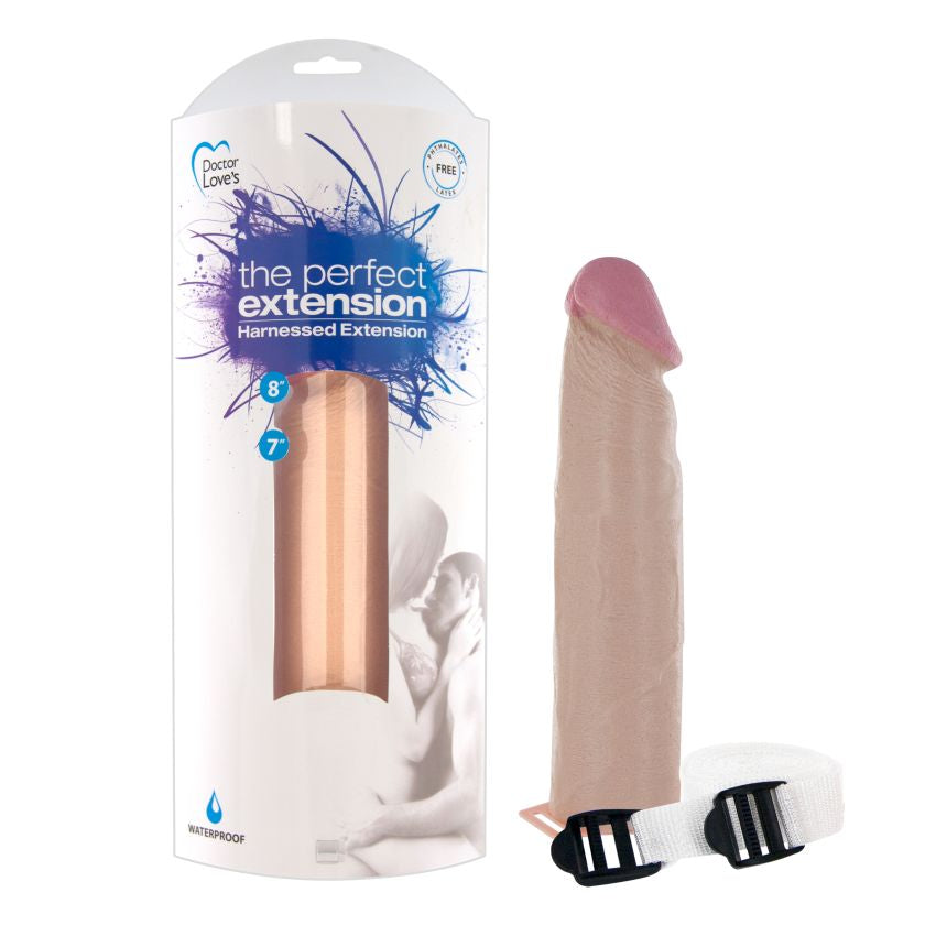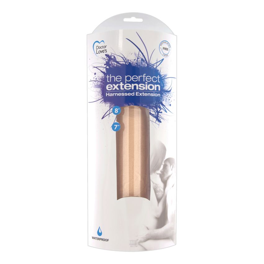 La extensión perfecta de 9 pulgadas. Extensión aprovechada. Perfect Extension fue diseñada para responder a innumerables solicitudes de una extensión que pudiera usarse con o sin erección pero que fuera suave y cómoda para su pareja y al mismo tiempo lo suficientemente rígida para una fácil penetración. Este dispositivo protésico tiene 2 pulgadas de diámetro y correas anchas para mayor comodidad que se pueden ajustar hasta 50 pulgadas.